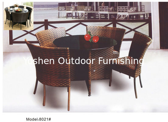 Producto NaYo:Comedor de patio exterior de 5 piezas de mimbre de PE para 4 personas con 2 sillas de brazos y 2 sillas sin brazos-8055