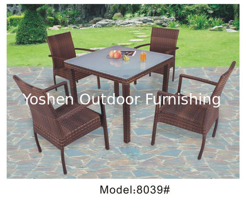Producto NaYo:Comedor de patio exterior de 5 piezas de mimbre de PE para 4 personas con 2 sillas de brazos y 2 sillas sin brazos-8055