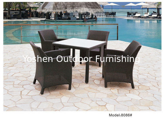 Producto NaYo:Comedor de patio exterior de 5 piezas de mimbre de PE para 4 personas con 2 sillas de brazos y 2 sillas sin brazos-8055