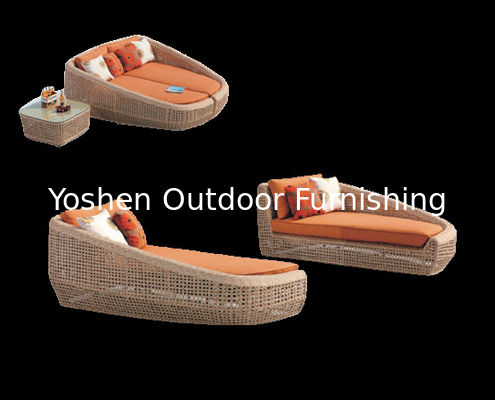 Nombre del producto:Muebles para exteriores de ratán cama de sol doble de ratán con 2 camas de sol --- 6085