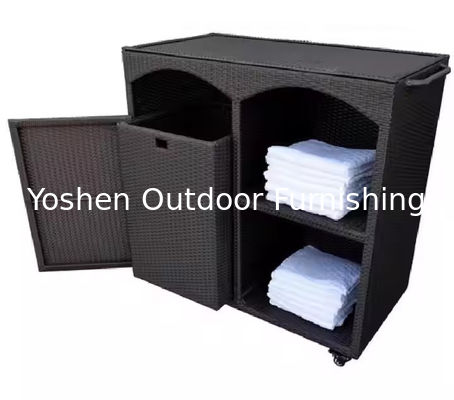 | Nombre del producto | Gabinete de almacenamiento de toallas de ratán para accesorios de piscina, cabaña caddy junto a la piscina |